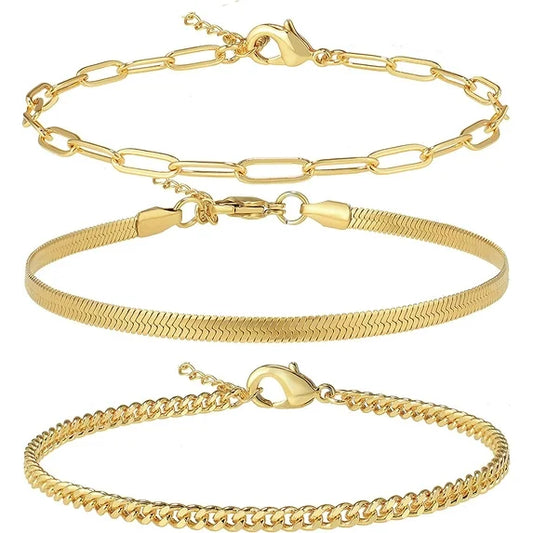 Zestaw Złotych Bransoletek na Kostkę - 3szt