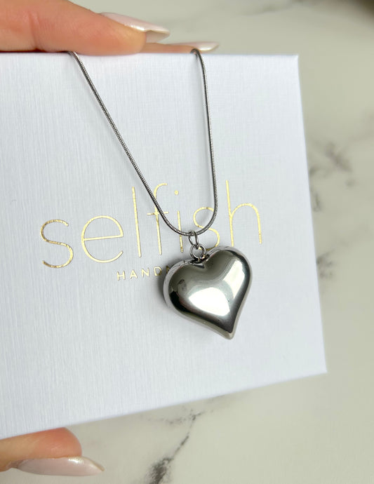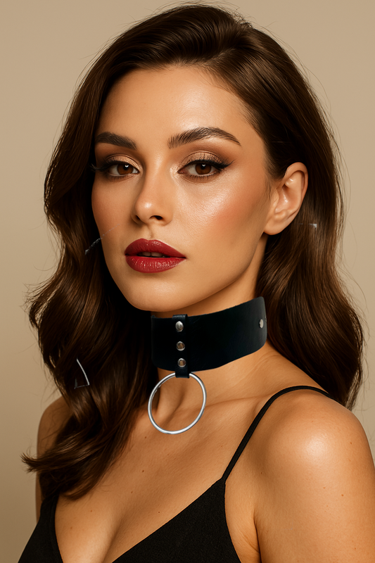 Skórzany Czarny Choker na Szyję z Zawieszką - Srebrne Serce Czerwone z Cyrkoniami