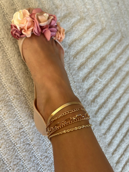 Zestaw Złotych Bransoletek na Kostkę - 5szt