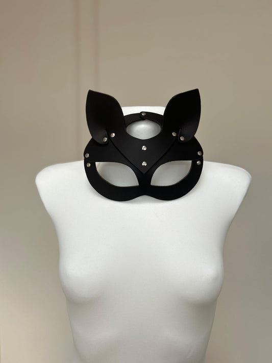 Kočičí maska z přírodní kůže - 01 HALLOWEEN
