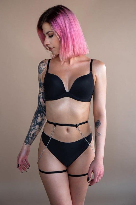 Kožený opasek s visícími řetízky - Dámský postroj na boky nebo pas - Červený
