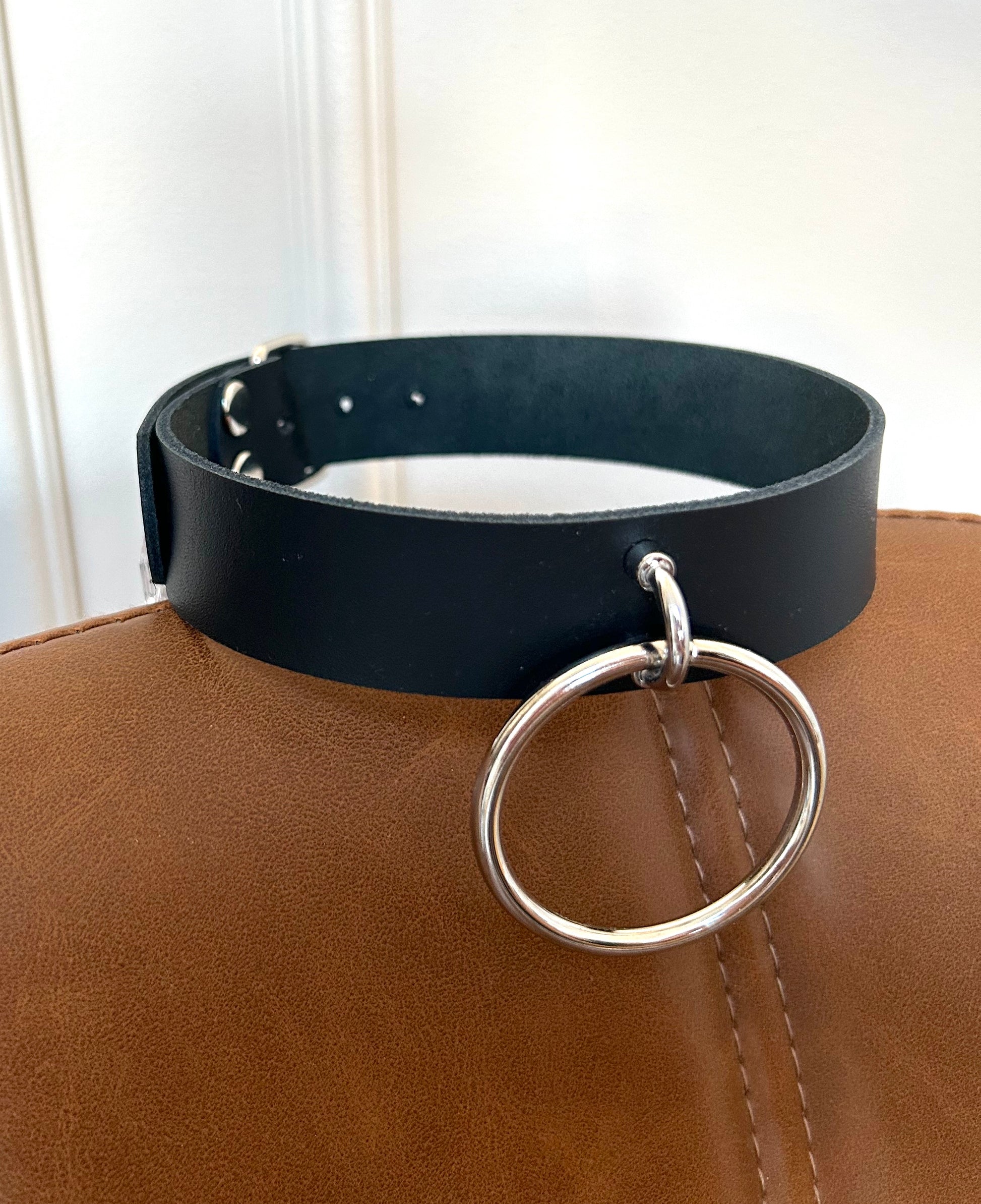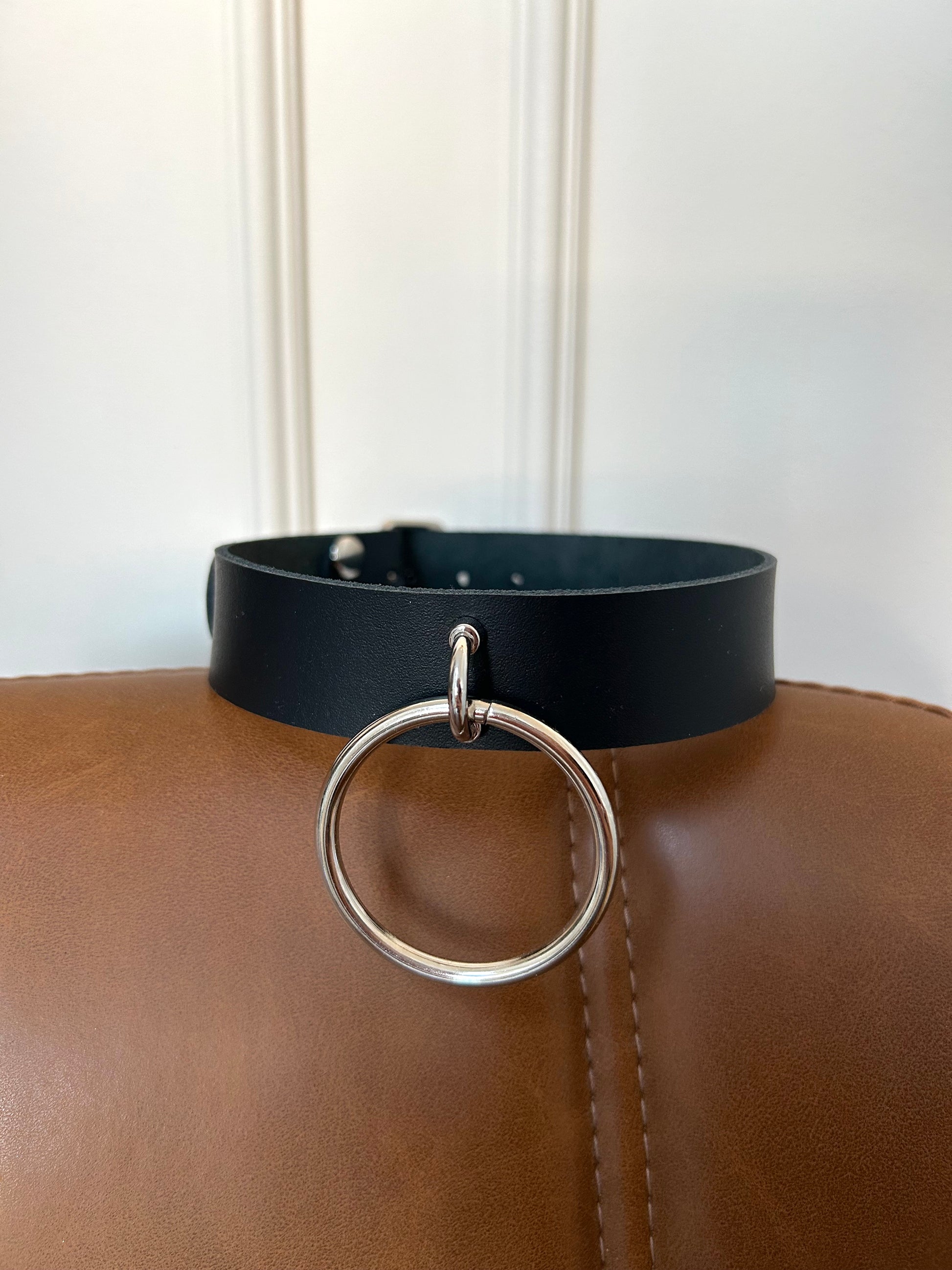Tease - Dámský kožený obojek s kroužkem na zavěšení