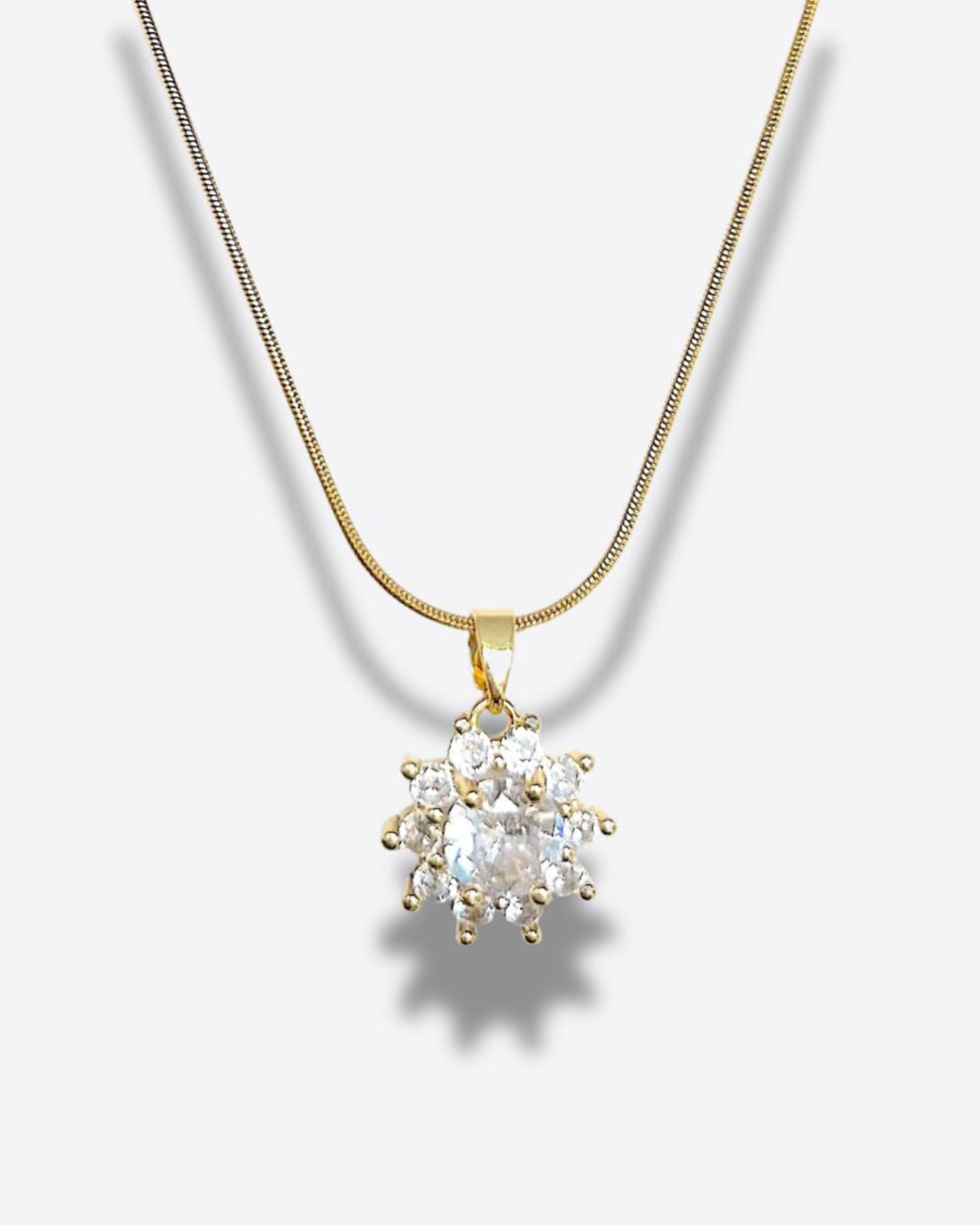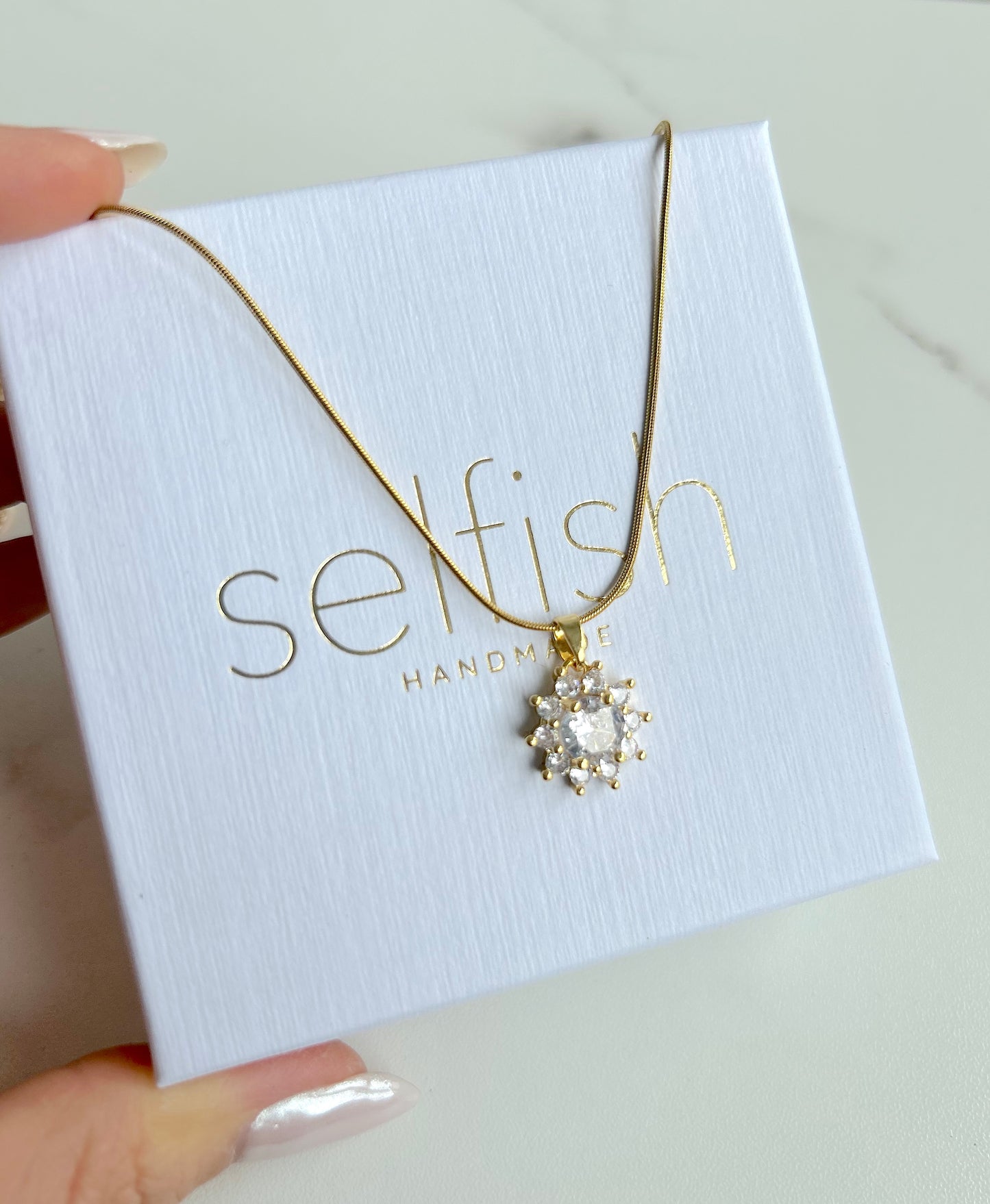 Floral Sparkle - Gold necklace with flower and cubic zirconia