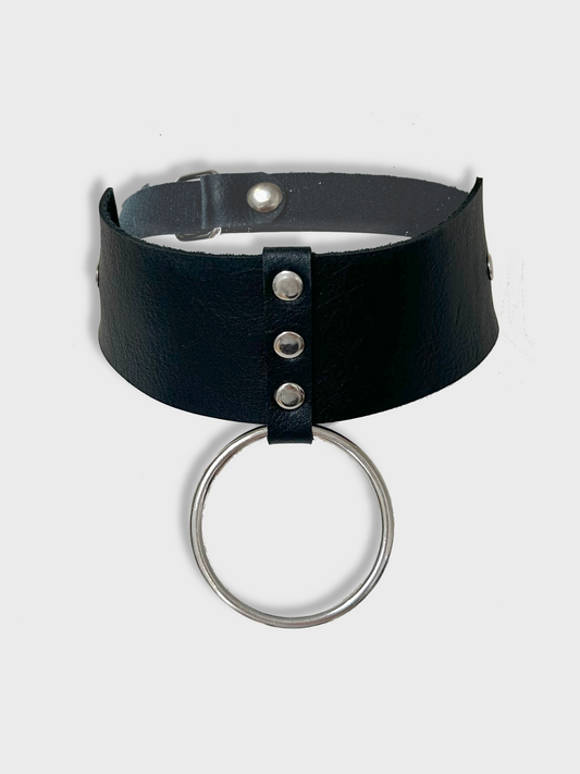 Gargantilla de cuero negro con circonita cúbica y anillo - N.° 02 - Rojo