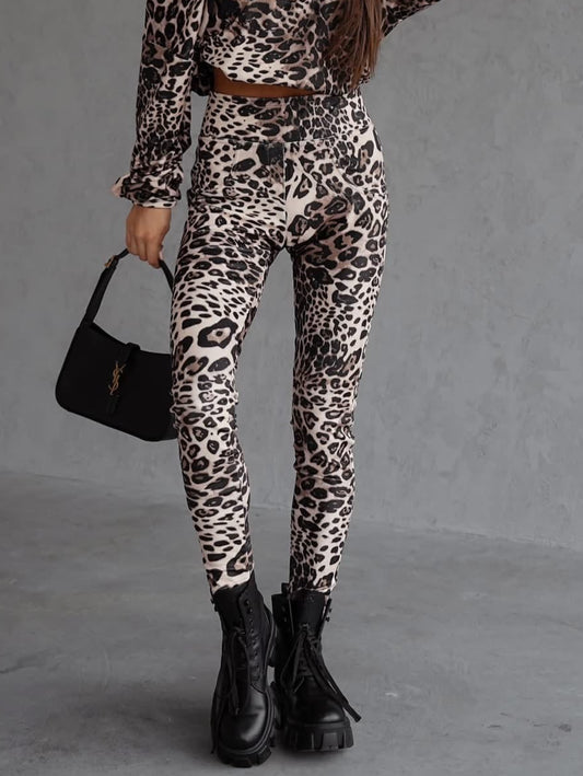 Conjunto deportivo con estampado de leopardo: leggings push-up y top oversize con cuello en V.