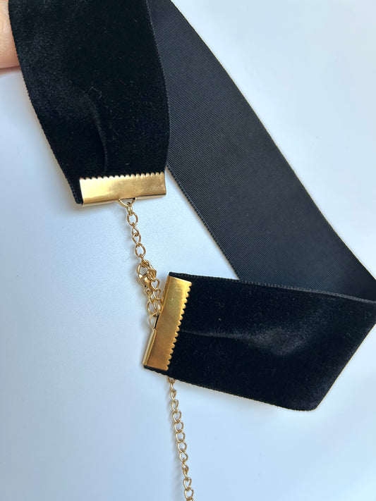 Zwarte fluwelen halschoker met een kubieke zirkonia-hanger