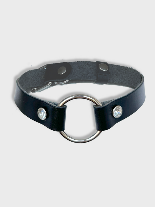 Zwarte leren choker met zirkonia en ring - nr. 02