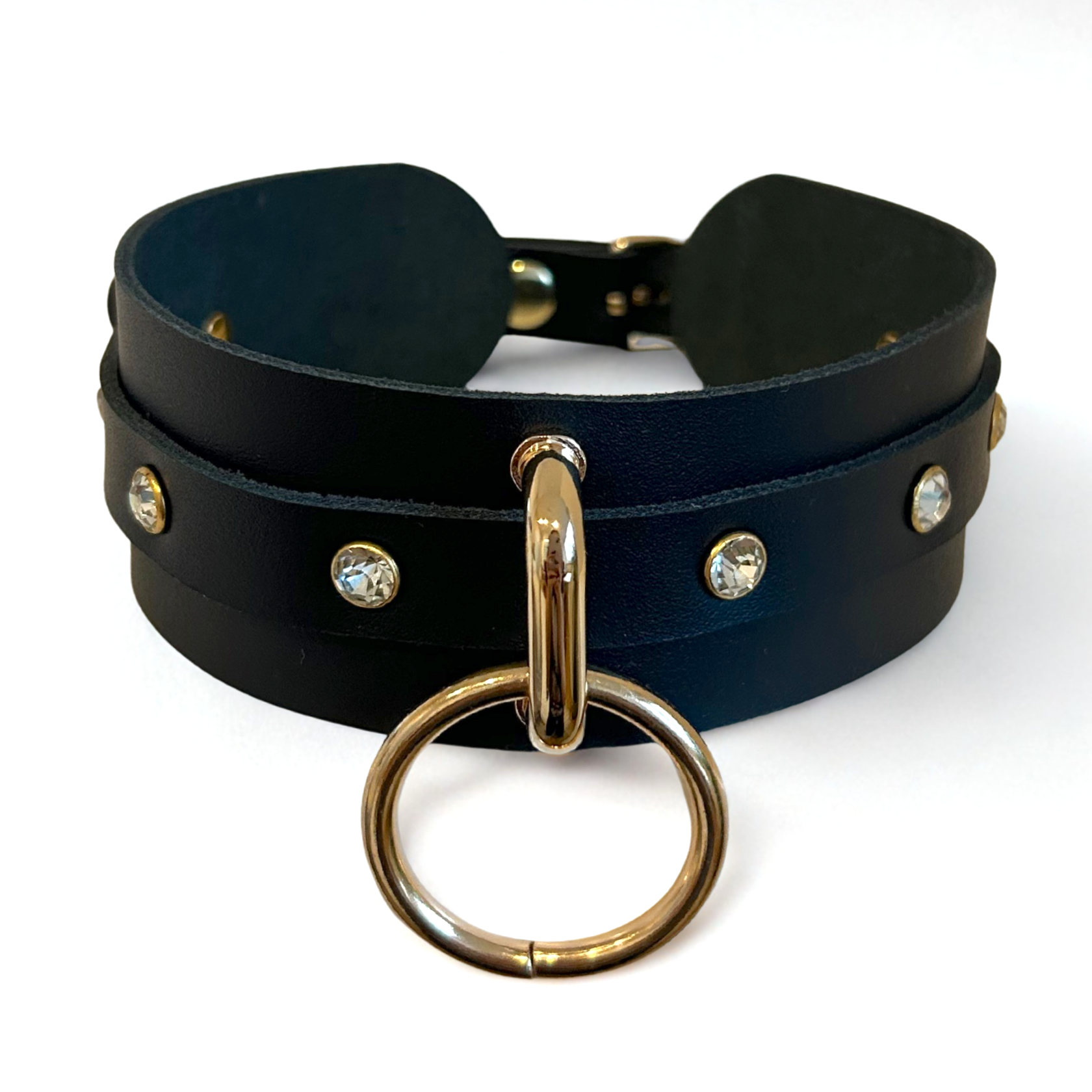 Bijou - Skórzana Obroża Damska z Cyrkoniami i Kołem