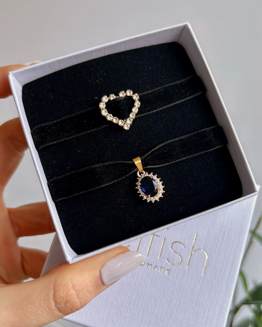 Azure Blossom - Silverhalsband med blått hjärta och kubisk zirkonia