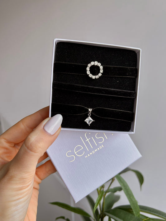 Naszyjnik z Krawatką w kształcie Y - Białe Cyrkonie Kwiaty