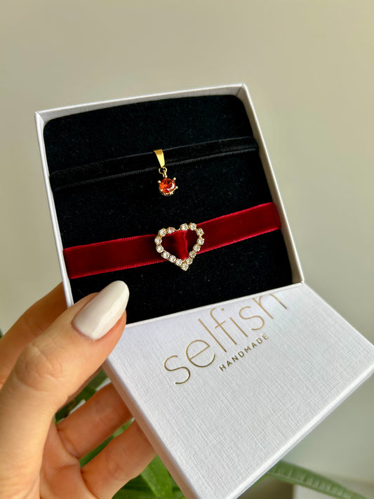 Scarlet Loop | Guldhalsband med liten båge och röd zirkon